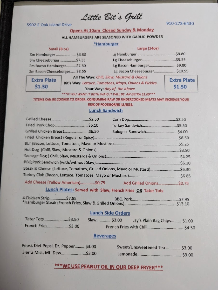 Welcome to Little Bit's Grill, a culinary gem nestled in Oak Island, NC. This charming eatery specializes in hearty, delicious burgers and classic sandwiches, all while maintaining a warm, friendly atmosphere reminiscent of an old diner.